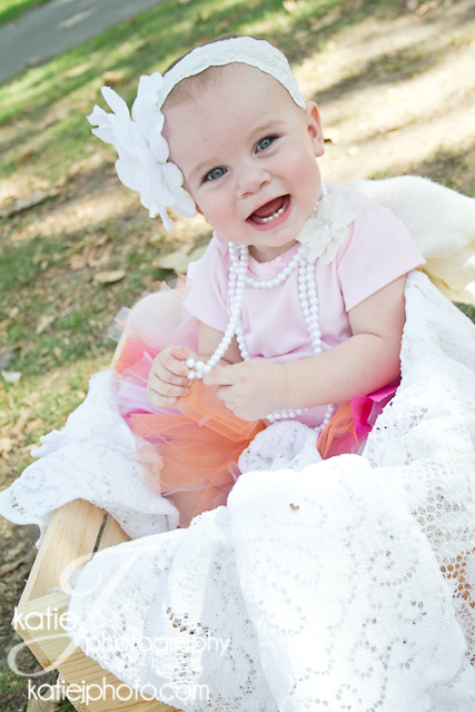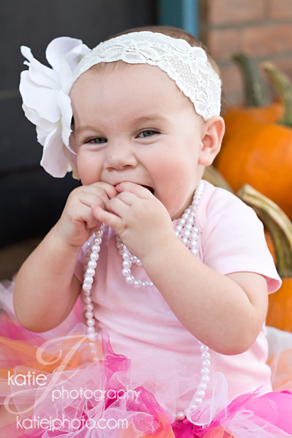 What do you pick as a theme for your daughter’s first birthday when you’re celebrating in October? Abigail’s mommy came up with the unique theme of pumpkins and roses for her birthday party and chose a pumpkin patch for her first birthday photos. Though I quickly learned Abigail is not a fan of the dirt, this cutie was mostly all smiles for her special day!