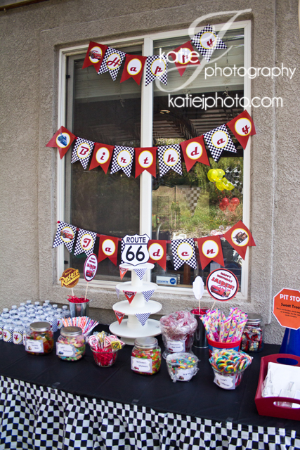Last month Jaiden celebrated his fourth birthday with a big bash featuring all of his friends from Cars. The house was decked out with racing flags, cones, and road signs, and not a detail was missed by his mom (just look at Jaiden’s shirt!). There were a lot of activities for the attendees, including a balloon artist, cars made from cardboard boxes, and a tattoo station, but the true highlight of this party was the jumper/slide that was set-up in the backyard! I’m sure all of the party-goers were asleep well before their bedtime that night!